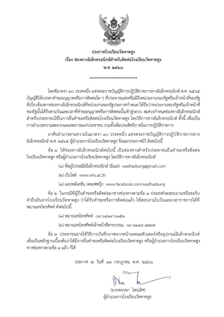 ข่าวประชาสัมพันธ์ ช่องทางอิเล็กทรอนิกส์สำหรับติดต่อโรงเรียนวัดหาดสูง พ.ศ. ๒๕๖๖ 18 กรกฎาคม 2023 admin ประกาศโรงเรียนวัดหาดสูง เรื่อง ช่องทางอิเล็กทรอนิกส์สำหรับติดต่อโรงเรียนวัดหาดสูง พ.ศ. ๒๕๖๖ ลงวันที่ ๑๓ กรกฎาคม ๒๕๖๖