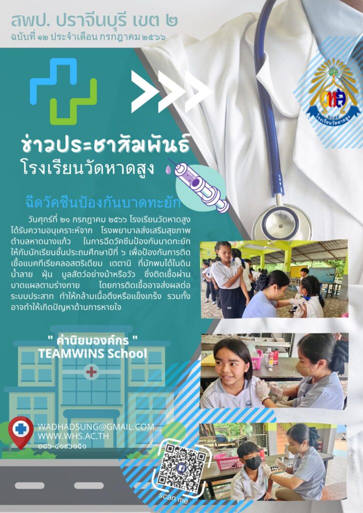วันศุกร์ที่ ๒๑ กรกฎาคม ๒๕๖๖ โรงเรียนวัดหาดสูง ได้รับความอนุเคราะห์จาก โรงพยาบาลส่งเสริมสุขภาพตำบลหาดนางแก้ว ในการฉีดวัคซีนป้องกันบาดทะยัก ให้กับนักเรียนชั้นประถมศึกษาปีที่ ๖ เพื่อป้องกันการติดเชื้อแบคทีเรียคลอสตริเดียม เตตานิ ที่มักพบได้ในดิน น้ำลาย ฝุ่น มูลสัตว์อย่างม้าหรือวัว ซึ่งติดเชื้อผ่านบาดแผลตามร่างกาย โดยการติดเชื้ออาจส่งผลต่อระบบประสาท ทำให้กล้ามเนื้อตึงหรือแข็งเกร็ง รวมทั้งอาจทำให้เกิดปัญหาด้านการหายใจ ![]()