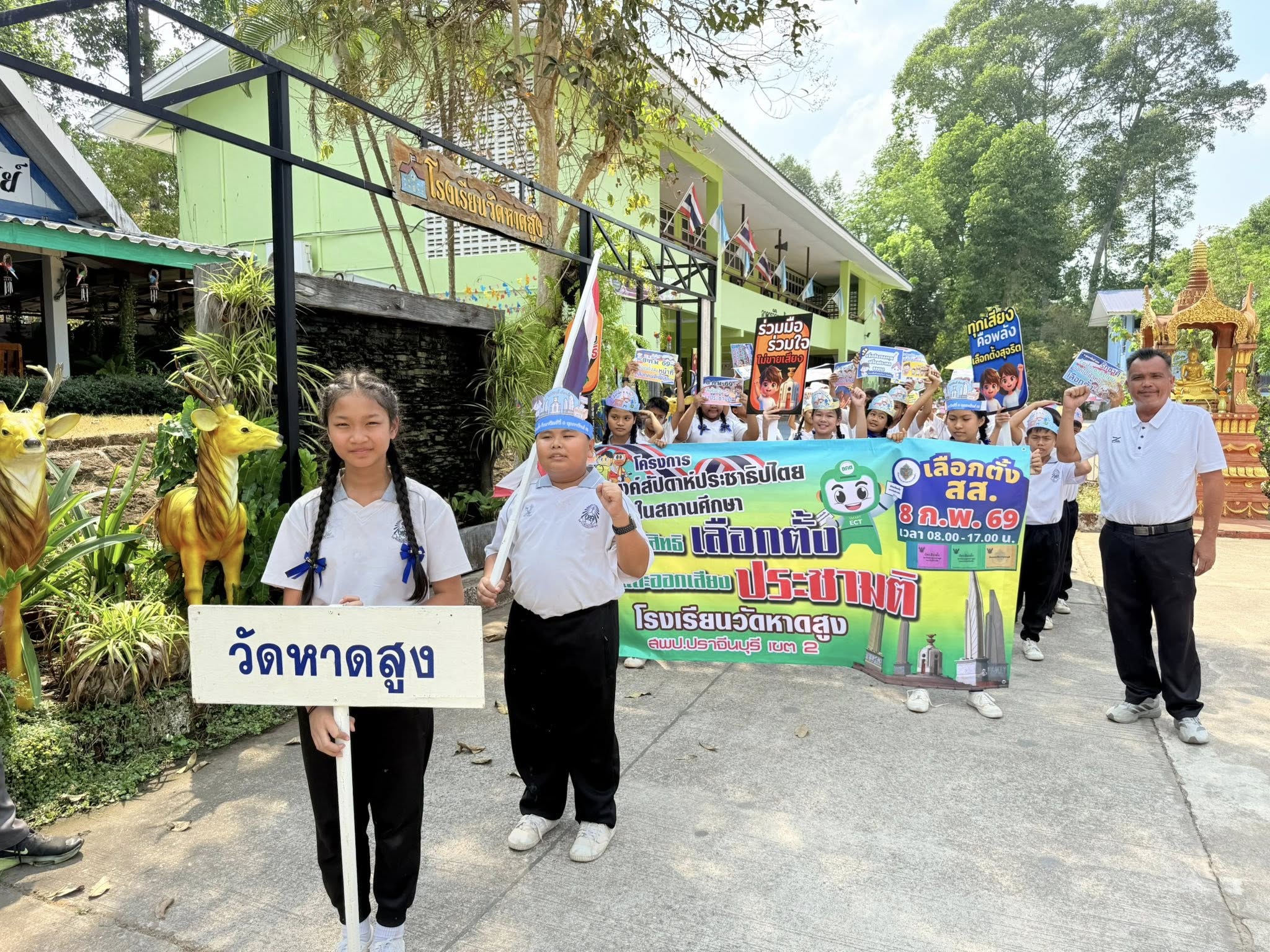 วันศุกร์ที่ ๖ กุมภาพันธ์ ๒๕๖๙ โรงเรียนวัดหาดสูง จัดกิจกรรมรณรงค์การเลือกตั้งสมาชิกสภาผู้แทนราษฎร และการออกเสียงประชามติ พ.ศ. ๒๕๖๙ เพื่อให้คุณครู นักเรียนโรงเรียนวัดหาดสูง และคนในชุมชน มีความรู้ความเข้าใจ และเห็นความสำคัญของการไปใช้สิทธิ์เลือกตั้ง และลงประชามติ