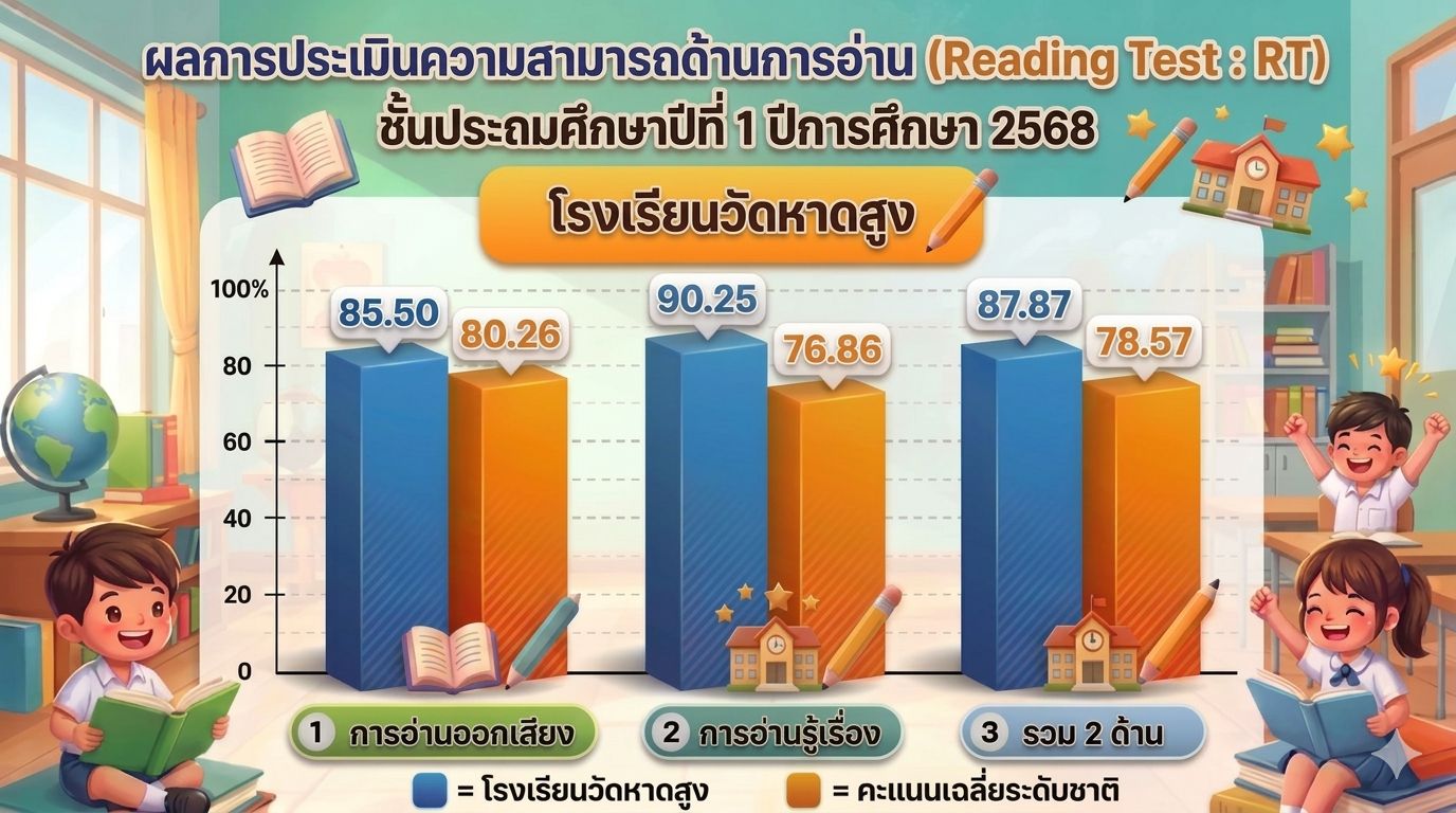 ผลงานต่างๆ ผลการประเมินความสามารถด้านการอ่าน (RT) 21 เมษายน 2026 admin ผลการประเมินความสามารถด้านการอ่าน (RT) ชั้นประถมศึกษาปีที่ 1 ปีการศึกษา 2568