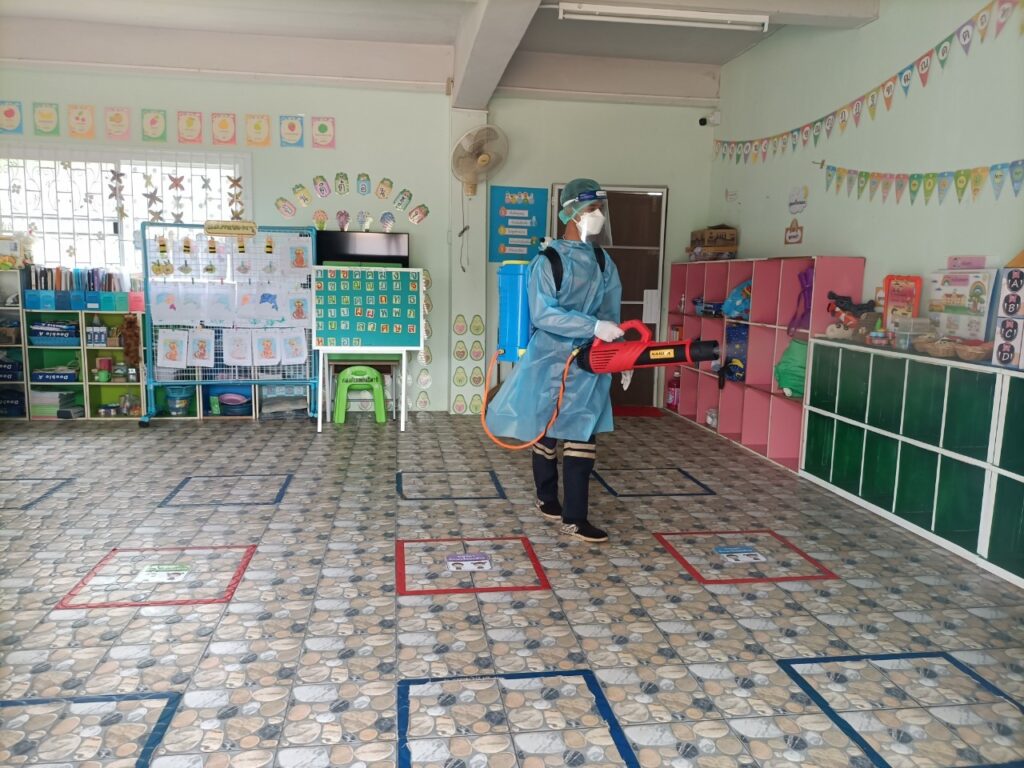 พ่นยาฆ่าเชื้อ COVID-๑๙ เพื่อความปลอดภัย